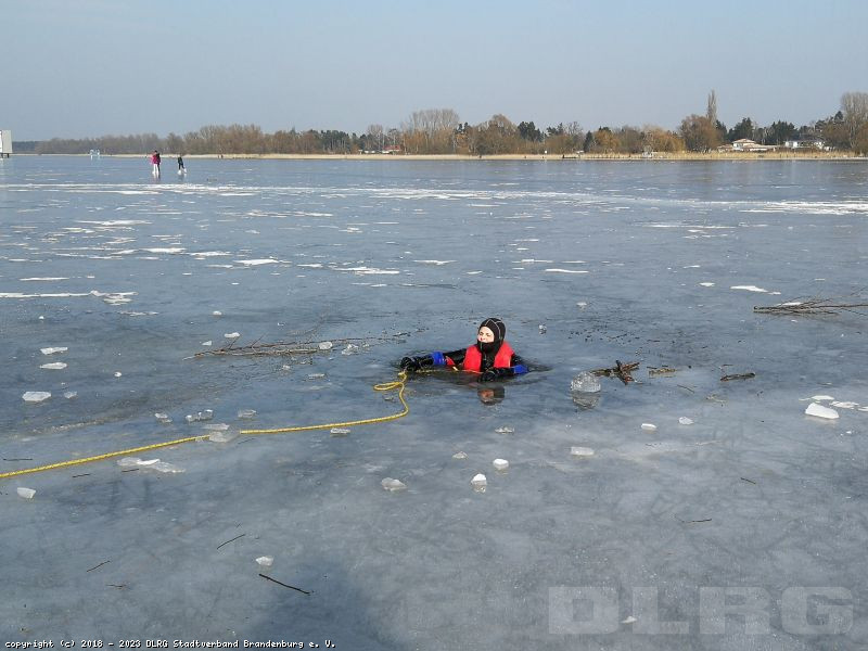 Bei herrlichen Sonnenschein haben sich am vergangenen Sonntag einige Mitglieder von uns und von der Johanniter-Unfall-Hilfe e.V. Regionalverband Brandenburg-Nordwest zu einer gemeinsamen Rettungsübung auf dem Eis an der Regattastrecke zusammengefunden.